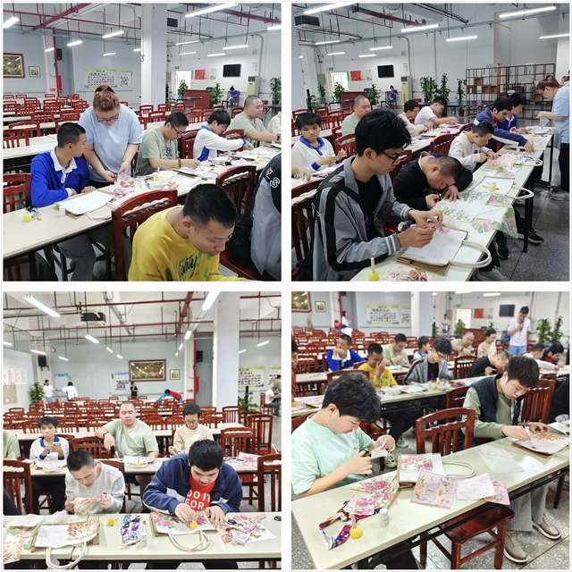 本次活动不仅让学员感受到手工创作的乐趣,更在剪裁、涂胶、拼贴的精细操作中,有效锻炼了手部小肌肉群控制能力与手眼协调,潜移默化地培养了耐心细致的职业素养。活动尾声,学员们相互欣赏作品、交流心得,在收获成就感的同时,切实实现了“在康复中学习技能,在技能中促进康复”的目标。