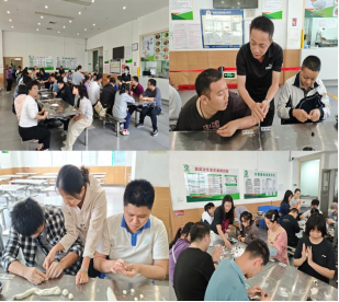当天上午,民爱食堂飘散出糯米粉的清香。40多名学员在工作人员的指导下开启了“手搓汤圆”的体验之旅。从揉面、包馅到搓圆,学员们神情专注,动作虽显生疏却格外认真。工作人员穿梭其间耐心协助,鼓励的掌声和欢笑声此起彼伏。经过一个半小时的忙碌,一盘盘雪白的汤圆整齐排列,被送往后厨煮熟,成为大家饭后的茶点。这一环节不仅锻炼了学员的手眼协调能力,更让大家在动手实践中感受到劳动的快乐和传统节日的魅力。
